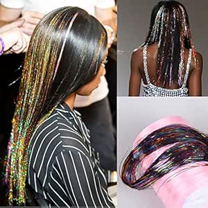 Dingli Hair 2pcs 100 Strands Synthetic Fibre Glitter Hair ... - tinsel hair extensions amazon
